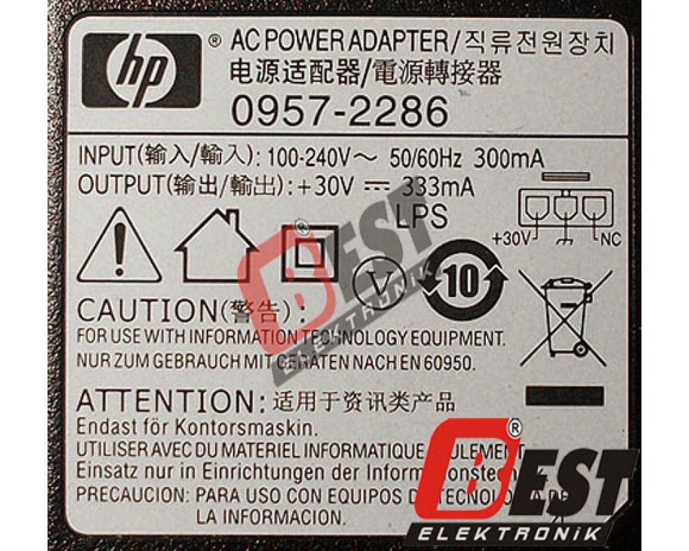 HP 0957-2286 Printer Yazıcı Adaptörü 30V 333mA